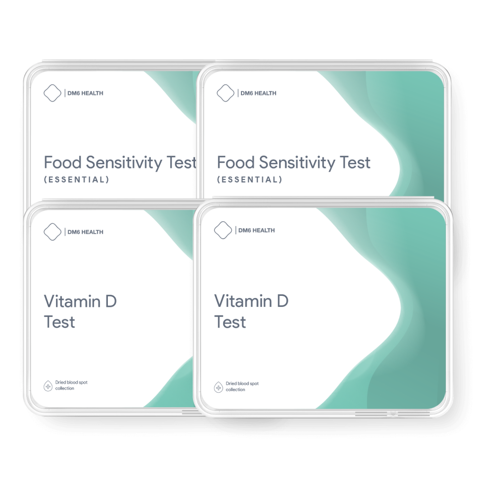 This bundle package of two Vitamin D and two Food Sensitivity at-home lab tests can help you determine if you're maintaining an adequate level of Vitamin D to support bone and cellular health and your body's immune response to 96 vegetarian foods to help guide you on what types of food to prioritize in a two-part elimination diet.