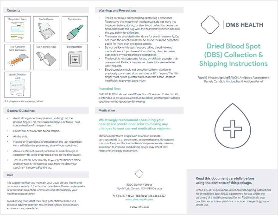 If a test was purchased on dm6health.com and your order hasn’t shipped, we can offer a full refund upon request. If your order has already shipped, we can offer a full refund minus $30.00 to cover shipping and handling fees. In addition, if you notify us that a submitted test was used by a minor before our lab begins processing, we can offer a refund minus $30.00. If we discover that an account was created and contains results from a minor, we will remove the account within 24 hours and no refund will be issued. For any other questions regarding this policy, please feel free to contact our Customer Care Team at info@dm6labs.com